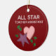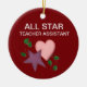 Adicione o nome do seu professor ou mensagem especial a um professor neste ornamento totalmente personalizável. Faz um presente de Natal excelente, um presente de apreciação de professores, ou um presente de fim de ano para um professor assistente especial. Design tem uma estrela e coração em lindas cores de Natal.