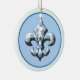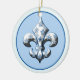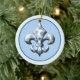 Uns enfeites de natal cerâmicos da flor de lis. Na parte dianteira, um fundo azul legal, com uma flor de lis branca polvilhada com os flocos de neve. Na parte traseira, o mesmos projetam, mas nós adicionamos o texto "NATAL 2010". Você pode manter esse texto ou removê-lo, OU você pode mudá-lo datilografando em seu próprio texto! É customizável essa maneira. Faz um grande presente de época natalícia, ou olha bonito em seus árvore de Natal ou pacotes do Natal.