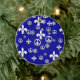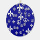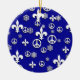 Ornamento frente e verso lindo do feriado! O fundo azul profundo é o contexto perfeito para polvilha de sinais de paz, de flocos de neve e de flor de lis.