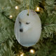 Ornamento cerâmico oval customizável com uma foto de um Pomeranian branco quadro por trilhos de madeira. Está olhando abaixo de mostrar-lhe as pestanas brancas bonito. Adicione o texto a um ou ambos os lados clicando personalizam-no! © poucos fotografia & design da asa