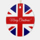 Ornamento britânico personalizado da árvore de Natal da bandeira de Union Jack. Decorações feitas sob encomenda do feriado do X-mas da feliz em circularmente ou forma do coração. Bandeira BRITÂNICA do design de Reino Unido GB Grâ Bretanha. A decoração inglesa patriótica para amigos, família do xmas do orgulho, miúdos, trabalhador do co, empregado, chefe, crianças, casal wedding, weds recentemente, mamã e pai, avós, parentes, o bebê etc. adiciona o cumprimento e a foto da sua própria estação na parte traseira opcionalmente. Modelo elegante da tipografia do roteiro. Corda glittery Dourado incluída. Criar sua própria lembrança para o ø Natal junto ou a outra ocasião.