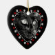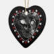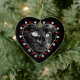 Um lindo ornamento cardíaco de gato preto 'Feliz Natal'. O ornamento apresenta uma arte digital ilustrativa de um gato preto em preto-e-branco, com sotaques cardíacos vermelhos e estampas de pata branca na frente. A parte de trás deste ornamento tem uma pata impressa e dois corações vermelhos com estrutura cardíaca pontilhada. O verso lê Feliz Natal, que você pode mudar na área de campo modelo na página se quiser adicionar sua própria saudação. Informe também o ano atual para a parte inferior do ornamento. Faz um presente maravilhoso para a família ou amigos ou como uma nova adição à sua coleção de ornamentos de férias! Este design está disponível em nossa loja também como um ornamento personalizado de nomes de animais de estimação, e também em outras formas e estilos de ornamentos, cartões de saudação, selos, cartões e muito mais! Visite nossa loja para ver mais estilos animais e produtos para presentes.