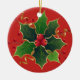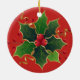 Ilumine acima de sua árvore de Natal e dê um toque do calor e o entusiasmo dos feriados a sua decoração do Natal com este ornamento cerâmico da árvore de Natal do círculo encantador. Caracterizando um visco do azevinho no ouro, as bagas verdes e vermelhas em um fundo vermelho, este ornamento encantador são uma maneira perfeita de comemorar a época natalícia com sua família e fazem um grande presente para todos seus amados.