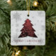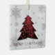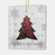Decorre sua árvore neste feriado com um Enfeites de natal cerâmico de Árvore de Natal Festiva Vermelha. Design de ornamento apresenta uma vibrante e festiva árvore de Natal enfeitada com cinzas em queda e flocos de neve brancos com um cartões de natal. Itens adicionais de presentes e feriados disponíveis com este design também.