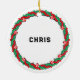 Creative badminton Enfeites de natal guardando presente com Papais noeis engraçados jogador de badminton. Para personalizar editar texto para adicionar nome.