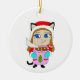Uma gatinha de chibi com uma grande xícara de chocolate quente