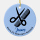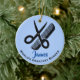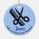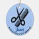 Ornamento de Haircut de Barber com texto personalizável e cor de fundo.
