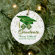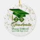 Este ornamento de manutenção apresenta boné verde e dourado e tassel em escudos de diamante com seu ano de graduação, diploma, nome e escola sobre o fundo das estrelas ouros. Faz um presente de excelente nesta temporada de festas. É fácil personalizar com opções personalizadas.