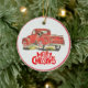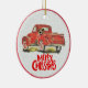 Amantes de os animais de Natal Ornament cerâmico com um caminhão vermelho com um cão e as palavras Feliz Natal. Adicione a sua foto favorita no fundo.Perfeito para amantes de cães.