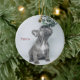 Foto personalizada do cão Puppy com ornamento cerâmico de Natal, com um logro francês cheirando a maleta. Não esqueça seu filhote nas férias. Crie um enfeite de árvore anual que comemore as memórias da vida de seu cachorro para acariciar e incluir todos os anos na sua árvore de Natal.