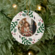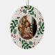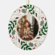 ornamento de fotos de feriado. Apresentando folhas e bagas sagradas e desenhadas à mão. Perfeito para crianças! Personalize com suas fotos e ano. Visite nosso compro Zazzle para ver mais itens correspondentes nesta coleção.