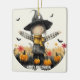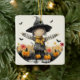 Celebrar o Halloween com este adorável ornamento cerâmico quadrado com um adorável espantalho de bruxa. Perfeito por adicionar um toque de diversão festiva à decoração da sua casa ou por dar a um ente querido. Este ornamento único captura o espírito do outono com abóboras, flores e morcegos brincalhões, fazer-o uma decoração encantadora para o Halloween.