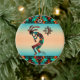 Personalize este Enfeites de natal "Um dos tipos" do sudoeste de Kokopelli! Ele apresenta um Kokopelli Sudoeste tocando flauta e dançando sob o sol num fundo de turquesa e sunset laranja... cercado por turquesa, laranja e fronteiras negras! Design De Arte Original Pelo Artista Kerry Miller.