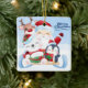 Este Enfeites de natal cerâmico é apresentado em forma quadrada com Papais noeis festivos de férias e impressões de amigos. Personalize este item ou comprar como está.