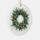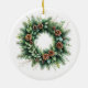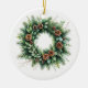 Enfeites de natal de cerâmica elegante com pinos, contendo uma coroa festiva de pinheiros. Perfeito para decorar sua árvore de Natal ou como um presente de feriado.