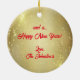 Personalize este Enfeites de natal "Um dos tipos" do sudoeste de Kokopelli! Ela apresenta uma Silhouette Kokopelli do Sudoeste, tocando flauta com notas musicais...num Dourado fundo de Natal e estrelas! Design De Arte Original Pelo Artista Kerry Miller.