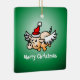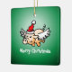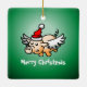 O Porco de Natal voador e fofo num Ornamento Quadrado Cerâmico. Personalizar texto.