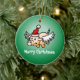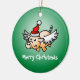 O Porco de Natal Voador num Ornamento de Círculo Cerâmico. Personalizar texto.