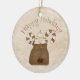 Neves primitivos, primitivos, sentados em uma sacola com canetas doces que tem sinos de trenó pendurados nela. A parte de trás do ornamento tem duas canas doces e você pode personalizá-las com seu nome ou nome da família e o ano. Um presente maravilhoso para um colega de trabalho, babá ou amigo.