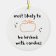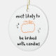 Evoca uma diversão maliciosa do Dia das Bruxas com o nosso Ornamento Cerâmico "Mais Provável de Ser Brilhado por Candies"! Este adorável e ligeiramente assustador ornamento captura a essência da mais doce tentação do Halloween.