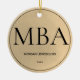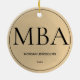 Um ornamento para um formando MBA com tom de ouro (não folha) e esquema de cor preta. Mostra o grau, o nome e o ano. Simplesmente personalize este ornamento, adicione-o ao seu carrinho, e mantenha-se fiel a esta grande conquista. Graduação MBA Dourada — Design de Natal Cerâmico | ©Melissa Patton - Designer