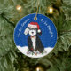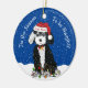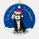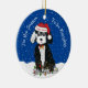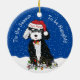 Cartoon Branco e Preto Bonito, Bernedoodle Puppy vestindo chapéu Papai Noel personalizado, arco vermelho com sinos, enredado em luzes de natal. Festivo "Esta é a estação para ser malvado" - fundo de neve azul de feriado. Adicione o nome do seu berneodle a este adorável ornamento de feriado!