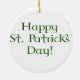 Chás de camarões em vários tamanhos e tons de cobrir verde este adorável ornamento. Embora o gráfico no verso leia "Feliz Rua. Dia de Patrick" em uma fonte maravilhosa, celta-esca, você é bem-vindo a mudar esta mensagem para melhor adequá-la aos seus propósitos. Embora fosse um adorável ornamento da Árvore de Natal, particularmente para o seu irlandês favorito (ou mulher), ele faz uma adorável ornamentação de "Primeira Rua do Bebê. Dia do Patrick" e um adorável adorno para presentes de aniversário e cestos de presentes. Pode até querer incluir uma data comemorativa no seu ornamento.
