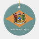 Celebre a época de férias com nosso Enfeites de natal elegante com a bandeira de Delaware! Feito com muita atenção aos detalhes, este ornamento homenageia a rica história e valores de Delaware. A design mostra orgulhosamente a bandeira do estado, apresentando um campo de azul colonial com um diamante colorido no centro. Dentro é o casaco de armas do Estado, que inclui um navio que simboliza a indústria naval de Delaware, um fazendeiro que representa a agricultura, e um soldado que simboliza o papel de Delaware na Revolução Americana. Acima do diamante está o lema estatal, "Liberdade e Independência." Seja enfeitando sua árvore de Natal ou dado como um presente pensativo, este ornamento adiciona um toque autêntico de orgulho de Delaware às suas comemorações de feriado. Feita com materiais de alta qualidade, este Enfeites de natal de bandeira de Delaware é durável e atraente visualmente, assegurando que se torne uma parte apreciada das suas tradições de feriado. Seu clássico design e charme festivo fazem dele a maneira perfeita de expressar sua admiração por Delaware durante o feriado.