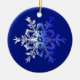 Fundo azul escuro profundo com um floco de neve simples, elegante. No reverso, o texto (lê atualmente o Natal 2010) é customizável. Você pode adicionar um nome, uma data, um provérbio, ou qualquer coisa que você gosta. Os ornamento personalizados fazem presentes inesquecíveis. Este ornamento do feriado é feito de cerâmico, é bastante grande (2,87 polegadas no diâmetro), e pendura de um cabo do ouro (incluído). Aperfeiçoe para árvores de Natal, para decorar pacotes, 100 outro usos!