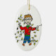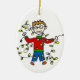 Este ornamento customizável Tangled das luzes de Natal compreende que aqueles salões não fazem plataforma eles mesmos. As características de design uma vara-figura tirada mão homem, vestindo uma camisola vermelha e verde do turtleneck, ao guardarar uma costa tangled de luzes amarelas. A expressão em sua cara di-la toda. Oh, o que tangled as luzes nós amarramos! O lado oposto está toda pronto para personalizar. Este ornamento é um presente do divertimento para o toxicómano do Natal em sua vida.