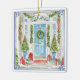 retrato aquoso de uma porta fofa numa varanda da frente decorada para o Natal