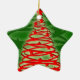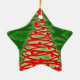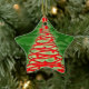 Olhe as estrelas circundar neste ornamento decorativo com uma árvore de Natal vermelha do furacão que gira os ornamento da estrela ao redor com um fundo verde com um teste padrão verde escuro nele.