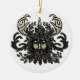 Ornamento branco da árvore da porcelana com o homem verde de solstício de inverno na parte dianteira e o coro canção do corte de Jennifer à "do solstício" na parte traseira.