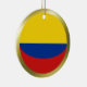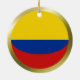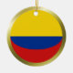 Ambos os lados deste ornamento caracterizam a bandeira de Colômbia morphed em um círculo com uma borda dourada. Decoração colombiana simples para sua casa.