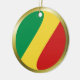 Ambos os lados deste ornamento caracterizam a bandeira de Congo-Brazzaville morphed em um círculo com uma borda dourada. Decoração congolesa simples para sua casa.