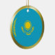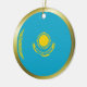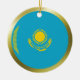 Ambos os lados deste ornamento caracterizam a bandeira de Kazakhstan morphed em um círculo com uma borda dourada. Decoração simples de Kazakhstani para sua casa.