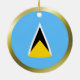 Ambos os lados deste ornamento caracterizam a bandeira do santo Lucia morphed em um círculo com uma borda dourada. Decoração santaluciense simples para sua casa.