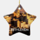 um ornamento bonito da estrela a adicionar a sua árvore de Natal. Um lado da estrela tem uma imagem sobre Bethlehem e o outro uma imagem do interior da igreja da natividade. O ornamento é fácil de personalizar: adicione o texto, os estilos, as formas, as imagens, etc. Esta é uma grande maneira de fazer-lhe verdadeiramente seus próprios. Para mais goste disto, visite o design açoriano em www.zazzle.com/azorean* e visite então a categoria da religião.