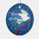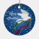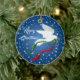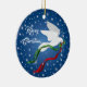 Personalize e clareie sua árvore de Natal com este lindo Enfeites de natal de "Um dos Tipos" de Portas Brancas! Ele apresenta uma pomba branca de Natal voando entre as estrelas brancas Carregando um ramo de oliveira com faixas vermelhas e verdes fluindo... Desejo a todos um ..."Feliz Natal! Esta é uma Design de Arte Original do Artista Kerry Miller."