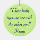 Imagem de Rumi em um lado com as citações "próximas ambos os olhos… a ver com o outro olho." no outro lado