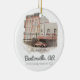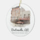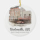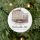 Bentonville Walmart museum watercolor personalizado ornamento com nome familiar à frente sob aquarela da primeira foto Walmart e da família atrás. Perfeito.
