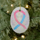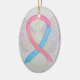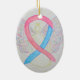 O ornamento do anjo da guardiã apresenta a pintura de um anjo da fita de reconhecimento azul e rosa. A arte da fita do anjo de consciência rosa e azul pode ser personalizada com mensagens personalizadas para fazer ornamentos de causas de excelentes ou pendentes para arrecadações de fundos, reconhecimento de presentes de Natal ou feriados, ou outros eventos ou ocasiões especiais.