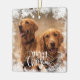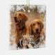 Crie seu próprio ornamento da Árvore de Natal com uma foto pessoal congelada no quadro. Crie um presente de decoração em árvore e adicione uma foto dos seus cachorros, da sua família. O efeito da neve dá ao design um efeito congelado com um texto manuscrito de na moda Feliz Natal, isto faz um presente de excelente para amantes de gatos e cães. Basta fazer um 'DIY' e adicionar duas fotos pessoais neste ornamento, uma para a frente e outra para o outro lado. A silhueta de flocos de neve é projetada especificamente para dar um efeito excelente no inverno.