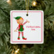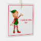 Este ornamento cerâmico da árvore de Natal é mostrado em forma quadrada com um impressão de elfo bonito. Personalize este item ou comprar como está. Imagem do stock