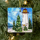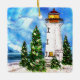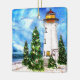 Este encantador ornamento do Natal pela margem apresenta um farol, árvores decoradas num dia de neve. De uma pintura original de alcooleira por Korinne Carpino.
