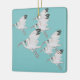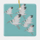 Ibis brancos em voo em fundo aquamarino. Imagem esquemática das aves costeiras.