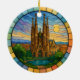 Um Ornamento Personalizado de Viagem Souvenir, projetado para comemorar sua inesquecível viagem a Barcelona em Espanhas. Quer você tenha ido trabalhar, desfrutado de uma fuga romântica, ou tenha participado de um programa de intercâmbio escolar, este ornamento comemora um momento especial que você sempre apreciará e desejará lembrar por anos a fio. Este ornamento apresenta um design ao estilo de vidro manchado criando uma peça verdadeiramente atraente para os olhos. Celebre o ano em que você viajou, seja como um casal casado, com a família, ou em uma aventura individual, com nosso adorável ornamento de 'Destino Viagem'. Essa manutenção personalizada é a adição perfeita à sua árvore de Natal, servindo como um lembrete duradouro de um feriado que você vai tesourar por anos vindouros. Design personalizado: personalize-o com seu ano para acalmar as memórias de seu feriado na praia para sempre. Presente perfeito: uma escolha significativa e memorável para amigos ou familiares. Uso versátil: mais do que apenas um ornamento em árvore! Mostre esta bela manutenção no seu ano de casa como um lembrete duradouro das suas férias especiais. Nosso ornamento de 'Destino Viagem' é mais do que apenas uma decoração — é uma emocionante mania, simbolizando sua jornada de exploração do mundo. Cada ornamento é meticulosamente feito para capturar a alegria e o entusiasmo das suas férias naquele ano.