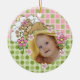 Você pode adicionar a sua escolha de texto e a foto do seu bebê a este personalizável ornamento de bebê com um ursinho de pelúcia dormindo e flores cor-de-rosa!