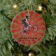 Ornamento Personalizado do Extreme Biker Natal 20XX. Um motociclista fazendo uma caminhada contra um fundo vermelho e dourado de explosão de estrelas. Todo texto personalizável, frente e verso!