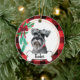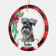 Enfeite Schnauzer com fundo de búfalo vermelho e garland e arco de Natal - Arte foi pintada à mão por mim e disponibilizada como este adorável ornamento! Adicione qualquer texto (sugerido: "Eu ❤️ meu Schnauzer" ou seu nome de docinho) visite www.curella.net para obter um retrato personalizado, adesivos e muito mais.